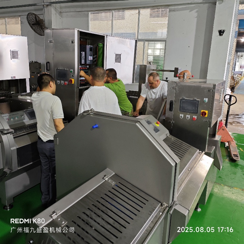 這幾個魁梧壯實(shí)的俄國朋友,可是衝著我們先進(jìn)的武器而來,一進我們九盈機械公司綜合展廳,直奔我們最先前的凍肉切割設備多段鋸鋸骨機而來,還沒等翻譯介紹,那就圍著我們的(de)設備(bèi)轉了三圈,拿著手機狠勁的拍(pāi)照,把我四段(duàn)鋸,六(liù)段鋸和八段鋸給摸了個遍(biàn),看看(kàn)照片現場,他們把電路係(xì)統,物料輸送(sòng)係統,操控係(xì)統,那是觀摩研(yán)究半天。他們急需冷凍牛肉和牛骨切割設備而(ér)且產量加工很(hěn)大(dà),想要提高產量,減少人(rén)工(gōng)成本,砍排機和凍肉切片機,以及我們的專利武器多鋸條鋸骨機必是首選(xuǎn),咱們自主設計研發製造的多段鋸鋸骨機出口歐美也很(hěn)多,很多客商(shāng)想複製偷(tōu)學,都沒成功,這可是因人而異的非標定製設備,有些技術還(hái)真是秘密,俄羅斯客商經過溝通交流,現場測試運行,給予了(le)肯定,通過翻譯表述:一句話就是現在是困難時期,希望優惠(huì)便宜賣給他們,支持一下;既然他們遠(yuǎn)道而來,表明立場(chǎng);咱們工廠也不小氣,合作共贏,成交。